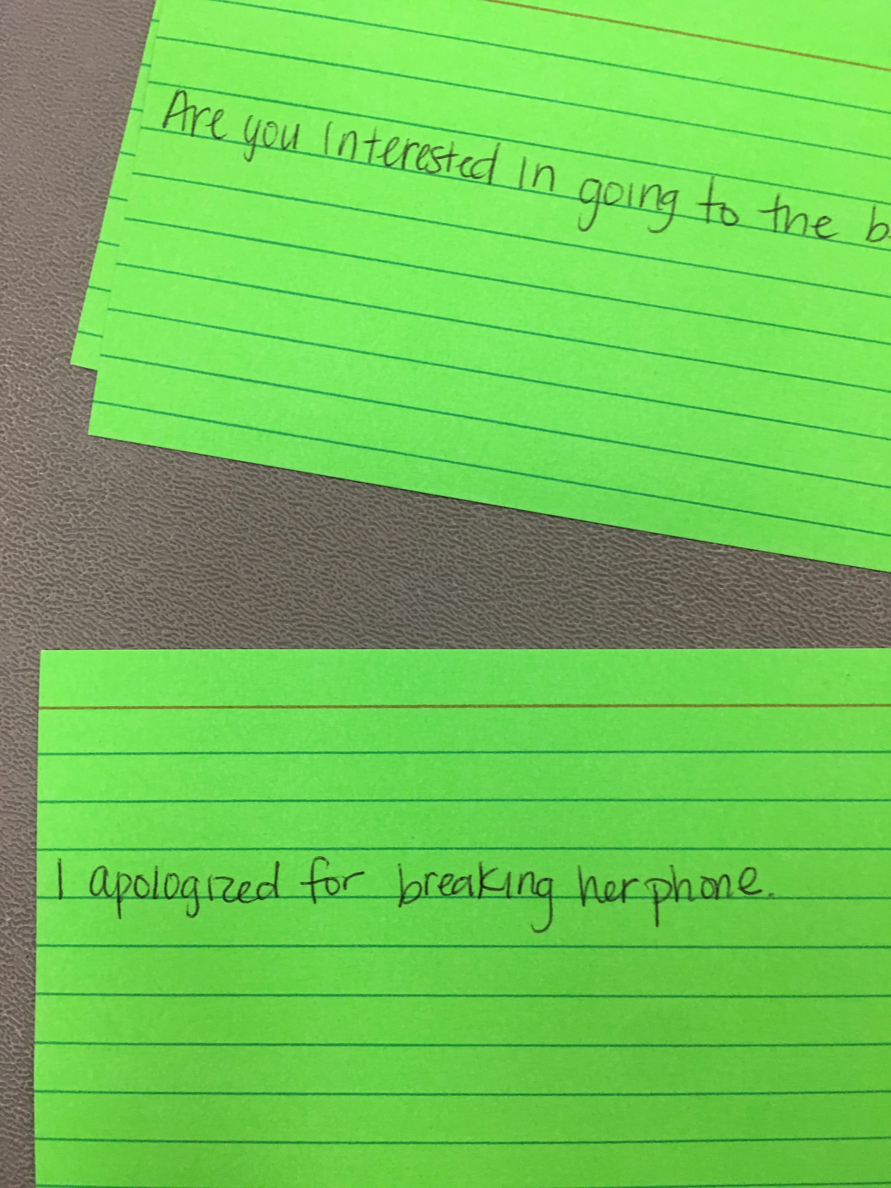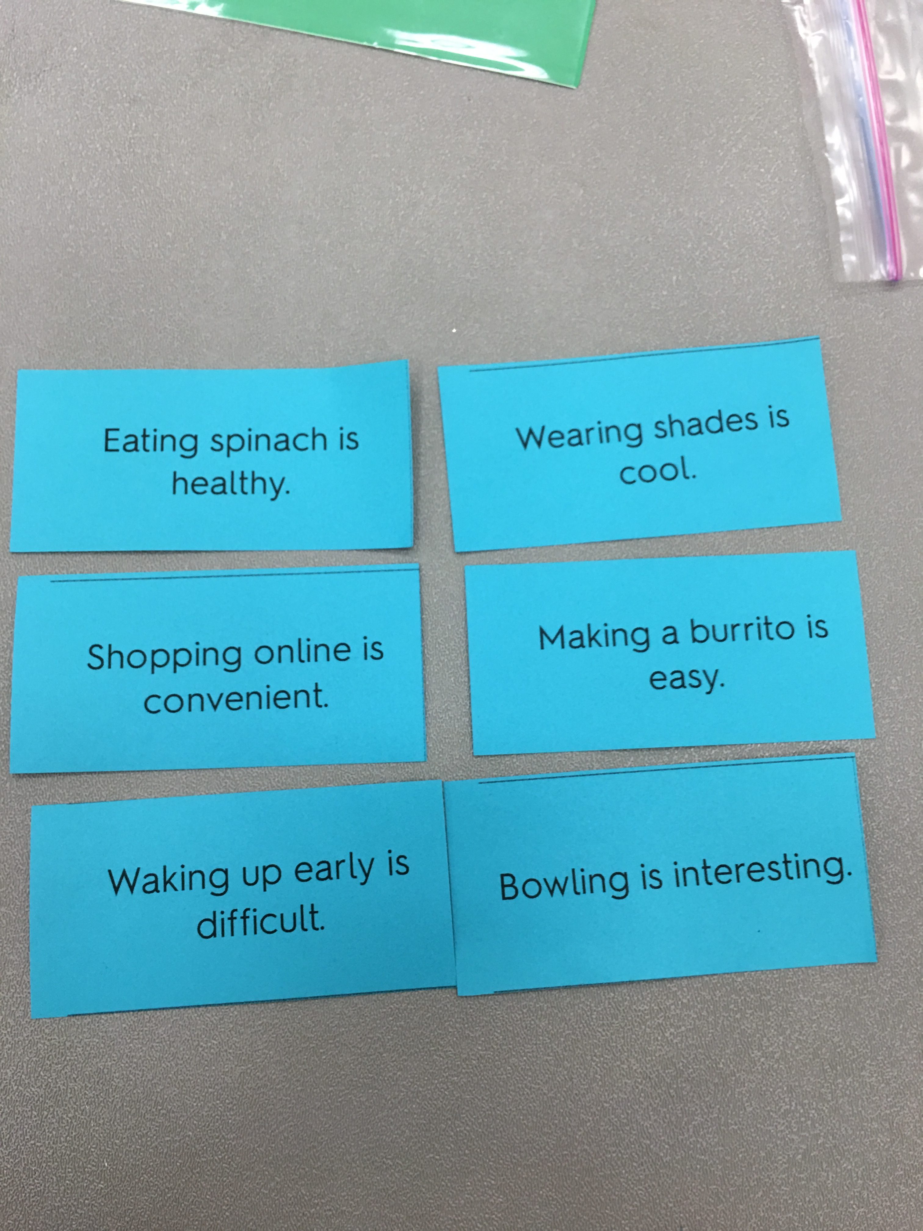 Usamos cores em cartões para memorizarmos frases com preposições, por exemplo.